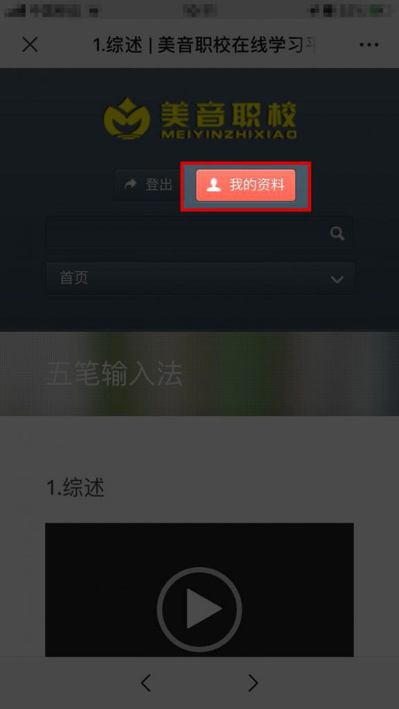 3.那么如何看到学习进度呢?再把页面移动到顶部位置,点击“我的资料”。